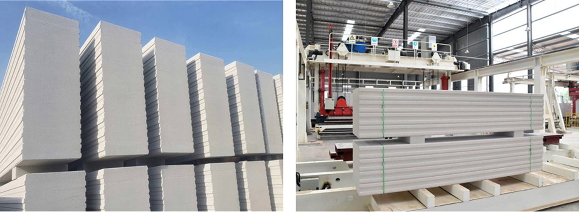 是引進國際先進設備和工藝,采用專業配筋進行工廠化生產的,具有輕質、保溫、防火、裝配式安裝等一系列優異性能的蒸壓加氣混凝土板材。